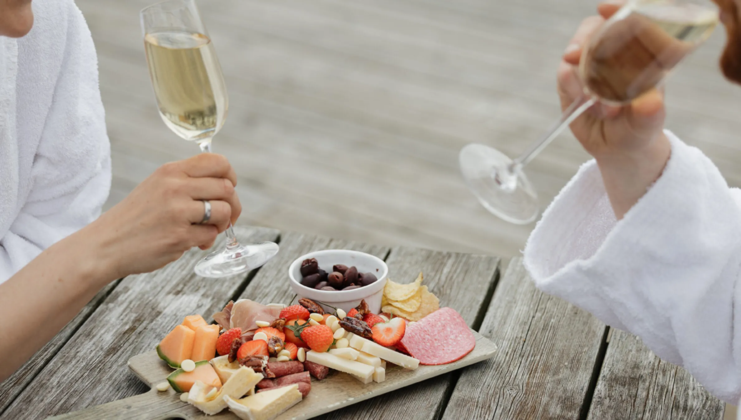 - Tapas og en drink før det er tid for badstue og boblebad